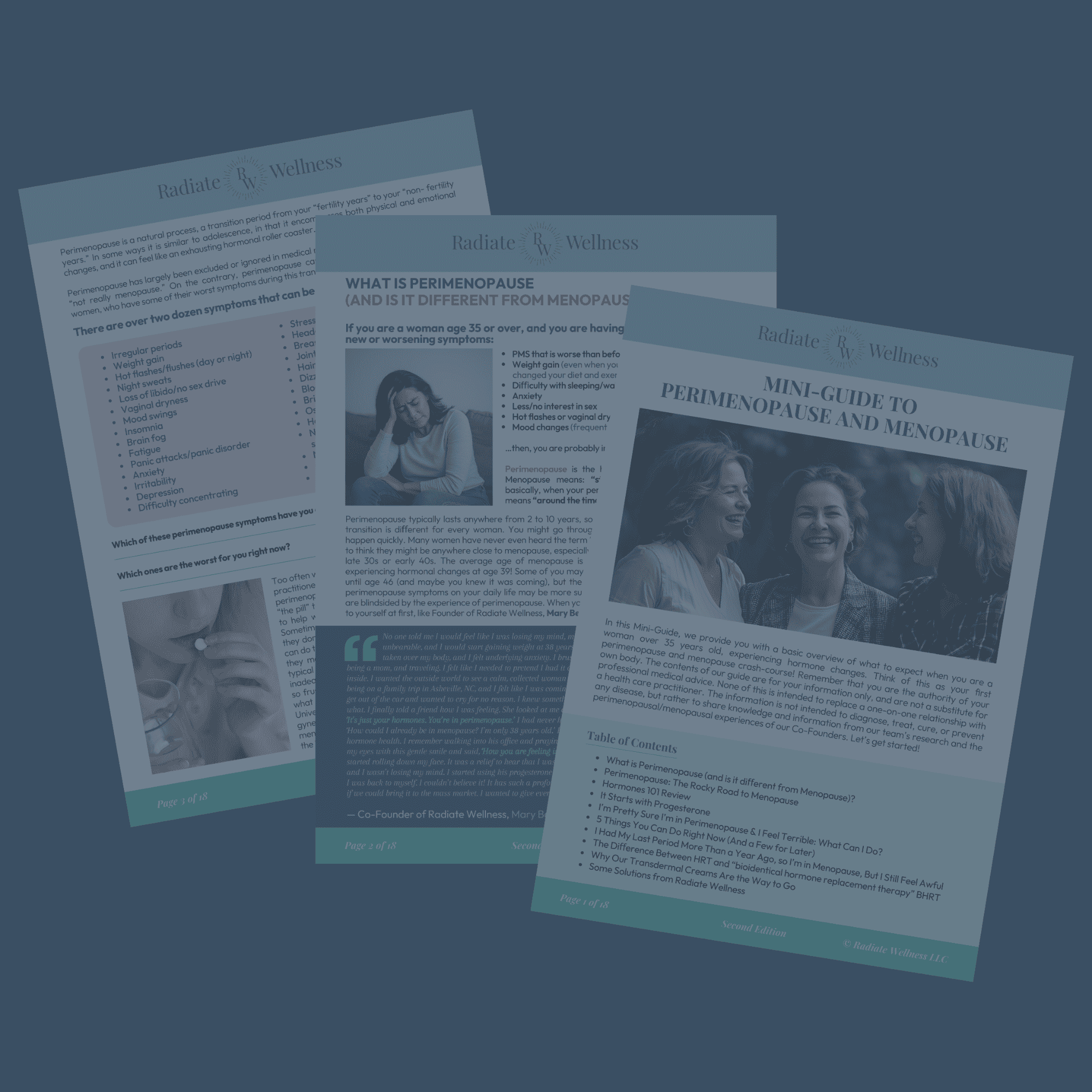 Mary Beth started Radiate Wellness to help women navigate the changes of midlifethrough mind, body, & spirit. She knows health and wellness isn't one size fits all. Aging should be a positive experience. Mary Beth wants all women to feel and look their best as they age. With education, community, and clean affordable products.